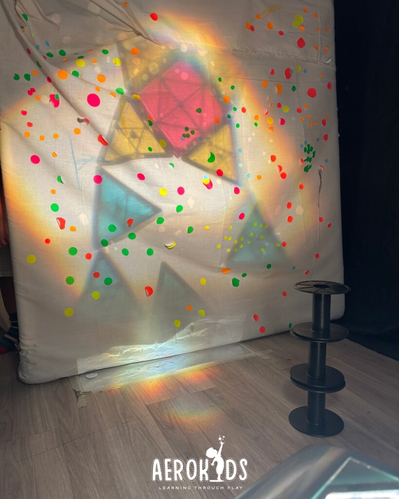 Our Nursery 1 children explored reflective surfaces using magnetic tiles, spools, and flashlights, watching how light, shapes, and reflections come together in magical ways.